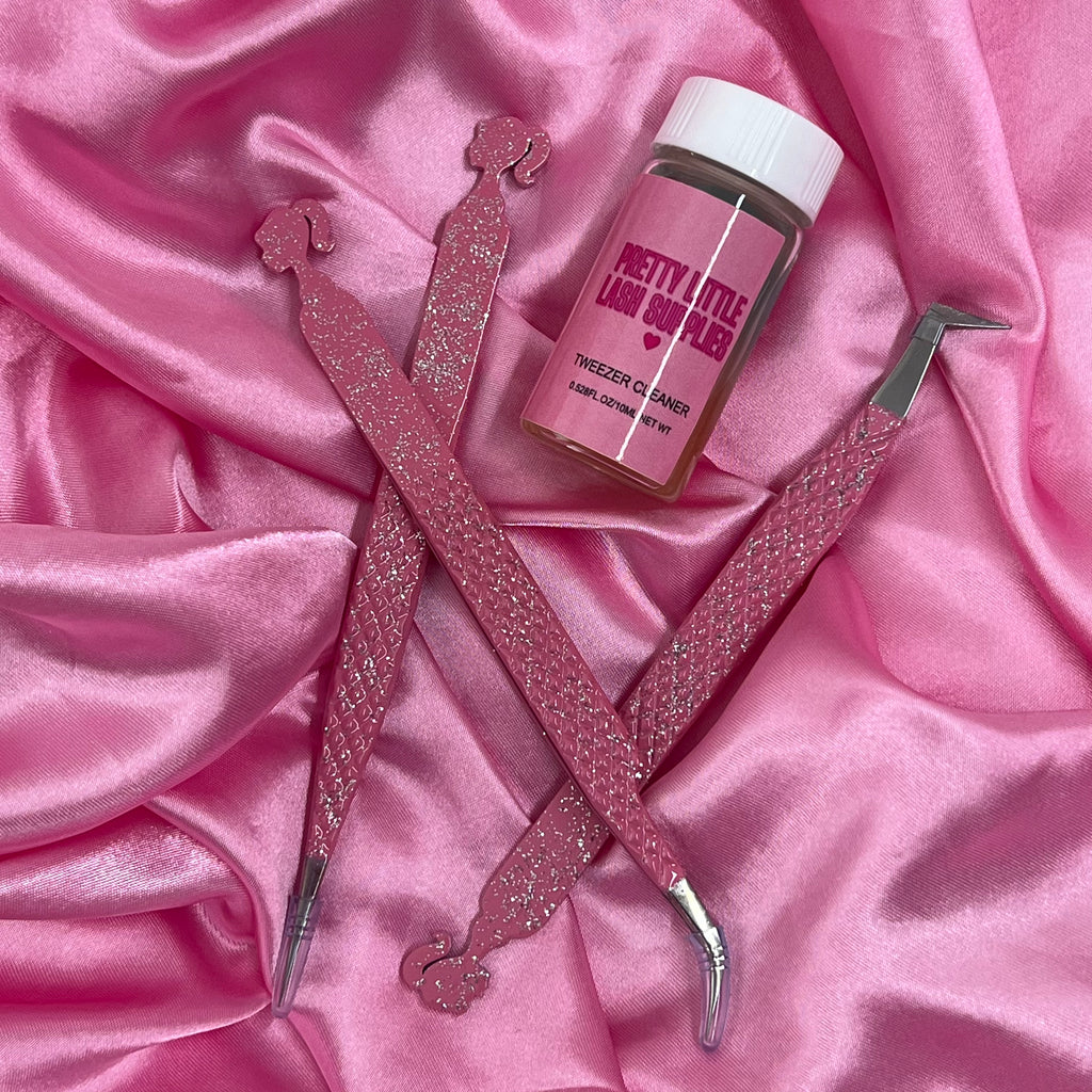 Get a set of 3 tweezers (straight, curved and volume) and get a free tweezer cleaner. Dip the tweezers in the liquid and swirl around to remove any glue 💖